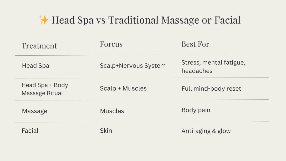 π Read more: Head Spa for Headaches & Burnout